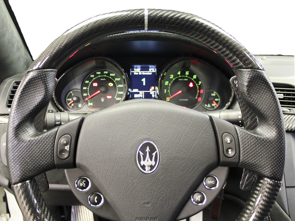 • Steering wheel in carbon fibre and leather
