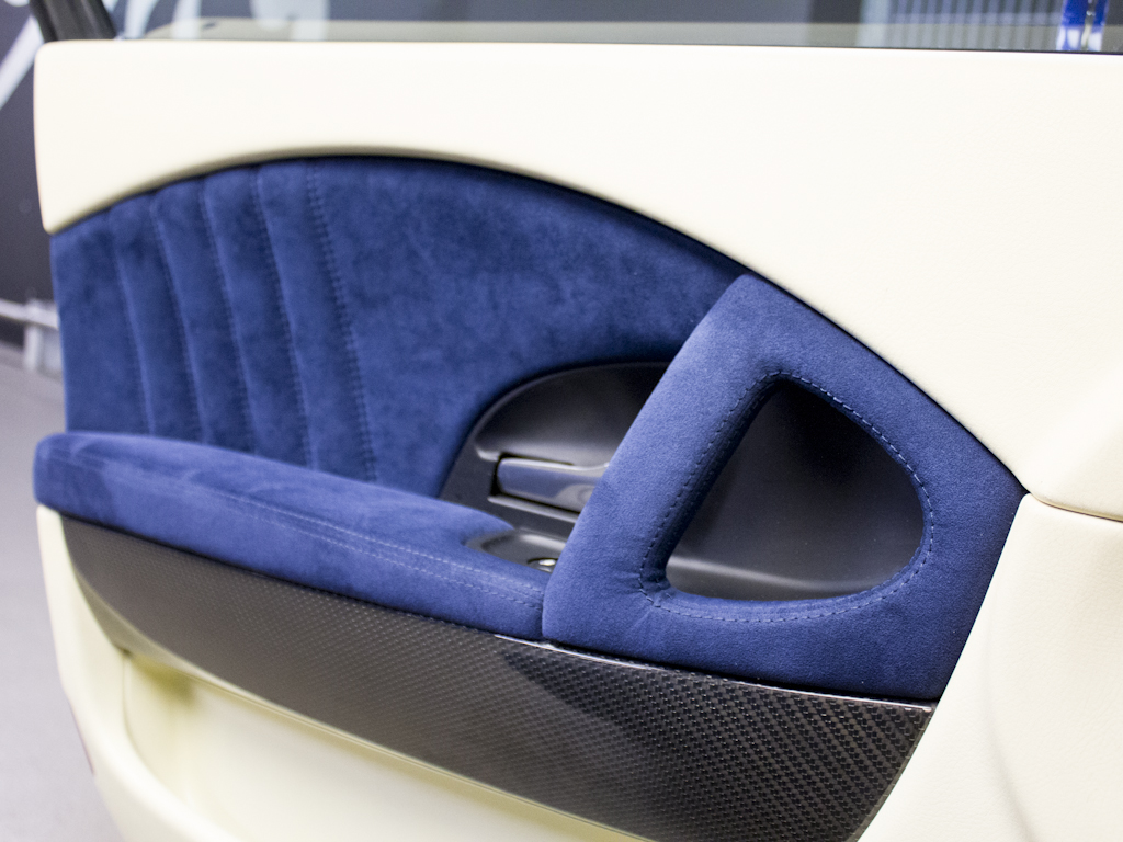 • Avorio upper door panel with Blue Trofeo alcantara inserts